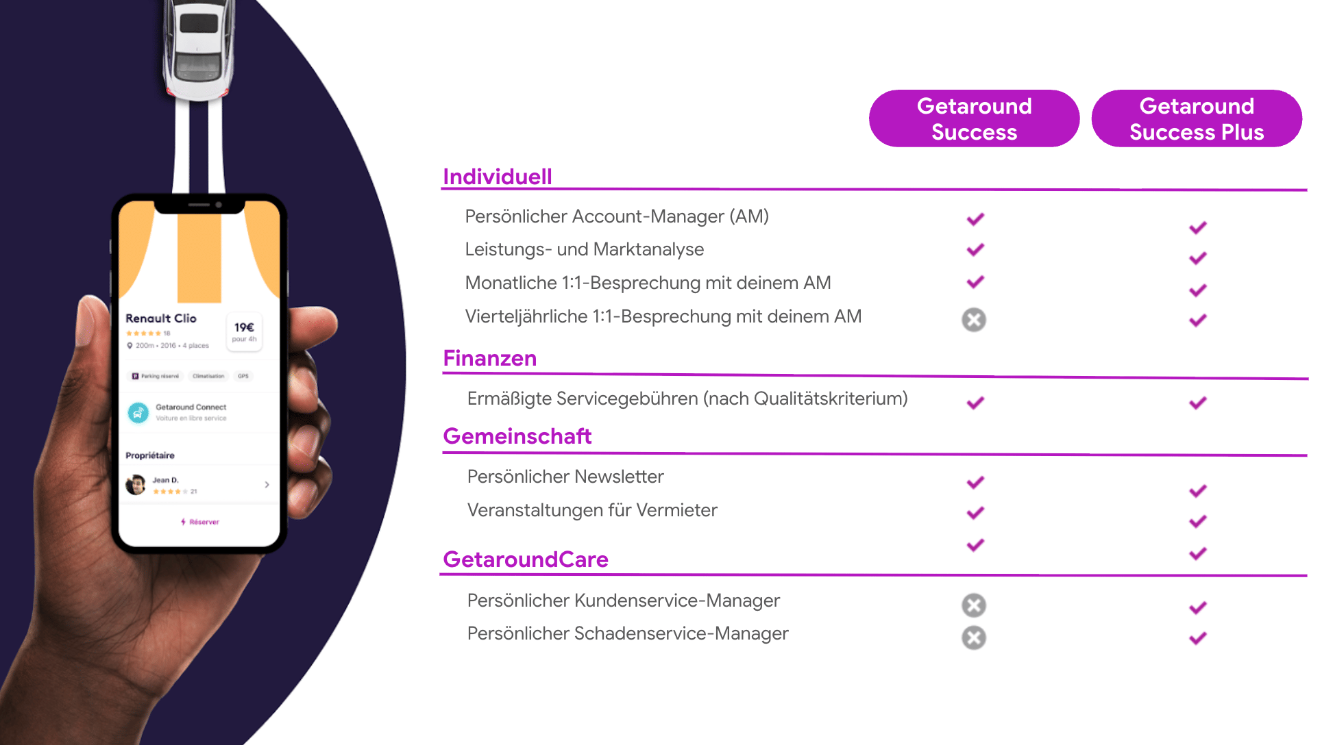 Progressives Programm, das deinen Bedürfnissen bei jedem Schritt des Wachstums deiner Aktivität auf Getaround entspricht.
